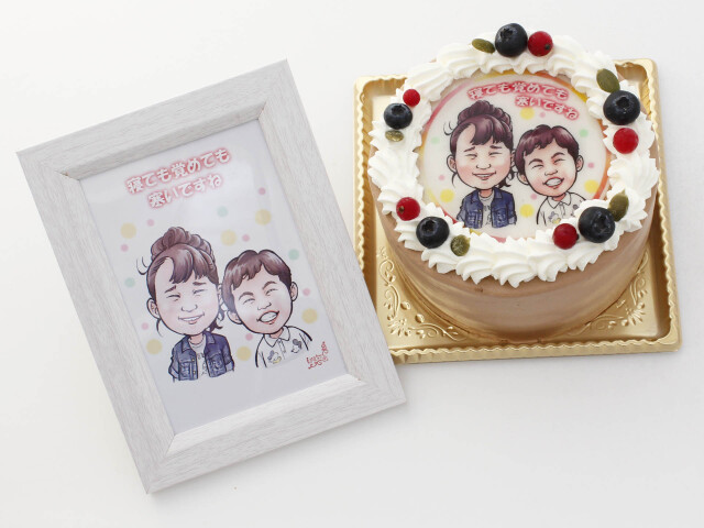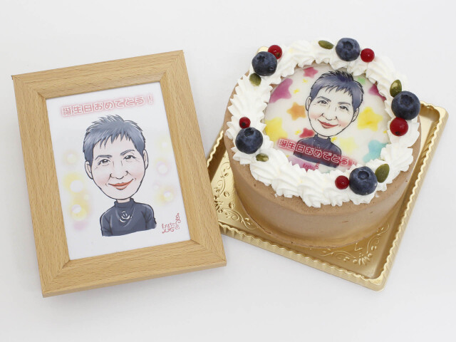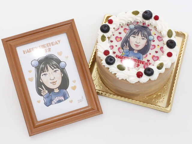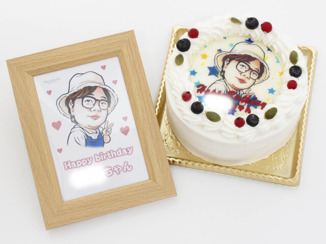 プリント似顔絵ケーキ (4号12cm) フォトスタンド付