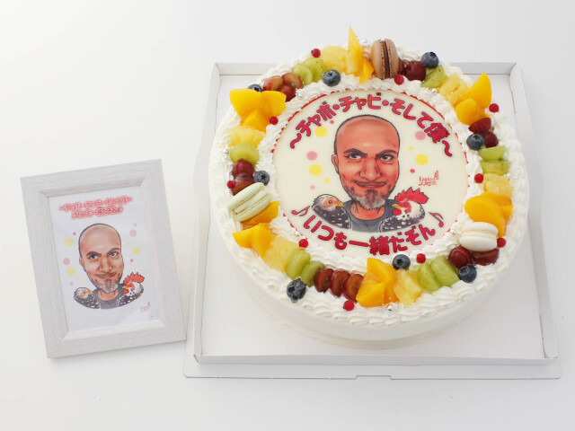 プリント似顔絵ケーキ (9号)中パーティ用 フォトスタンド付